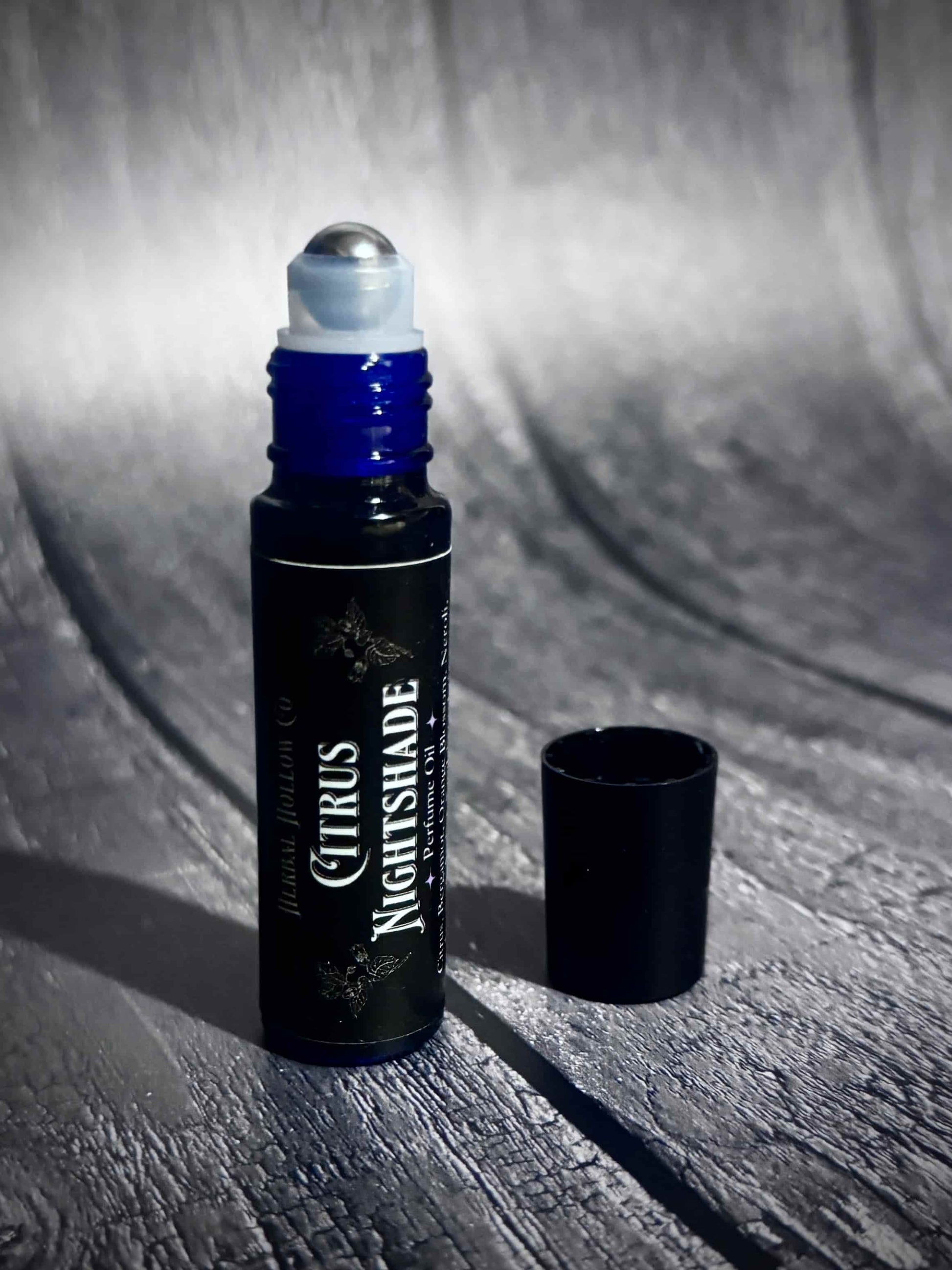 This fantasy-inspired rollerball perfume oil is a biting citrus floral blend reminiscent of a witch's brew. A perfect light scent for whimsical, cottage core, elven, or dark feminine aesthetics.